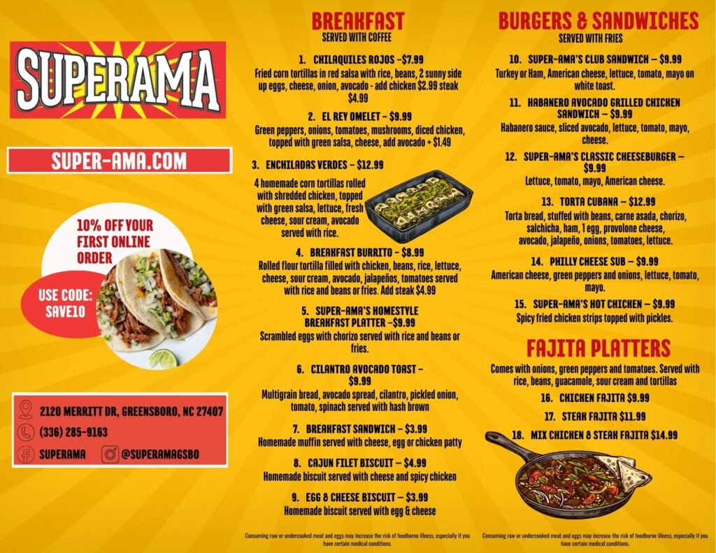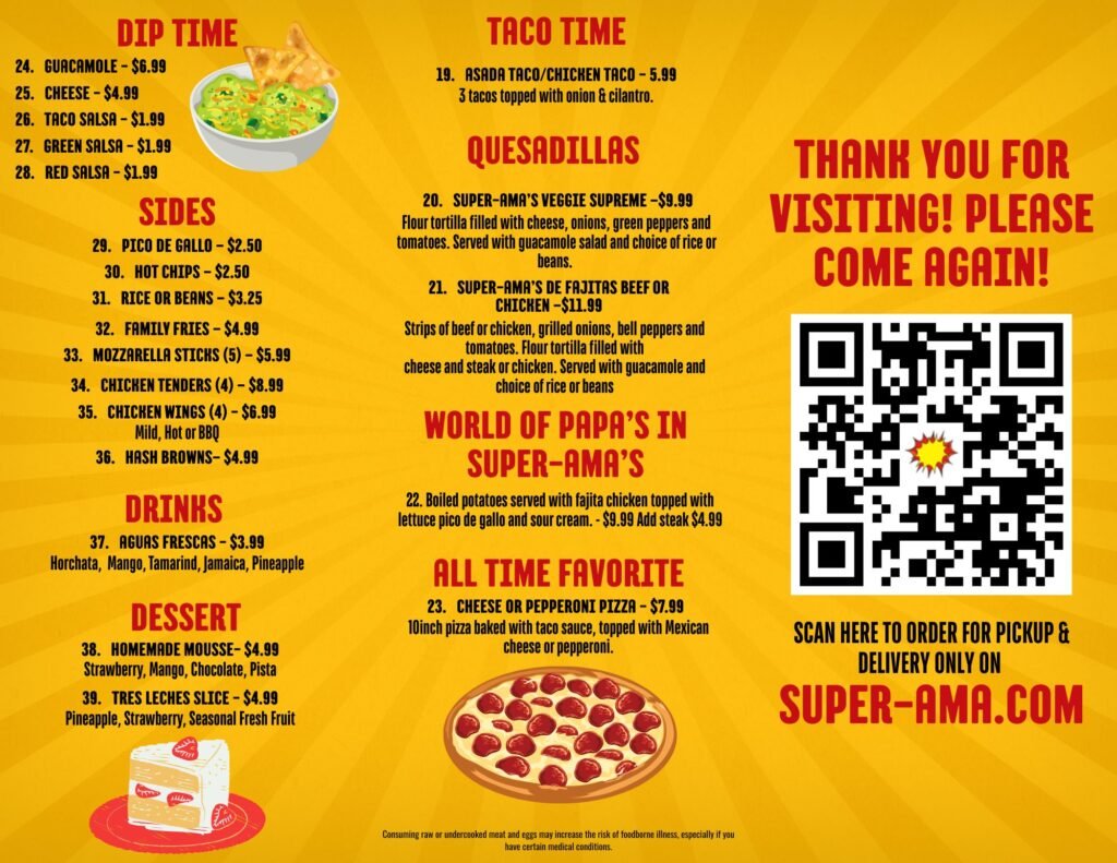 Featuring a vibrant and diverse selection of appetizers, handcrafted tacos, hearty burritos, specialties, delicious sides, traditional desserts, and refreshing beverages, ensuring there’s something to delight every palate.